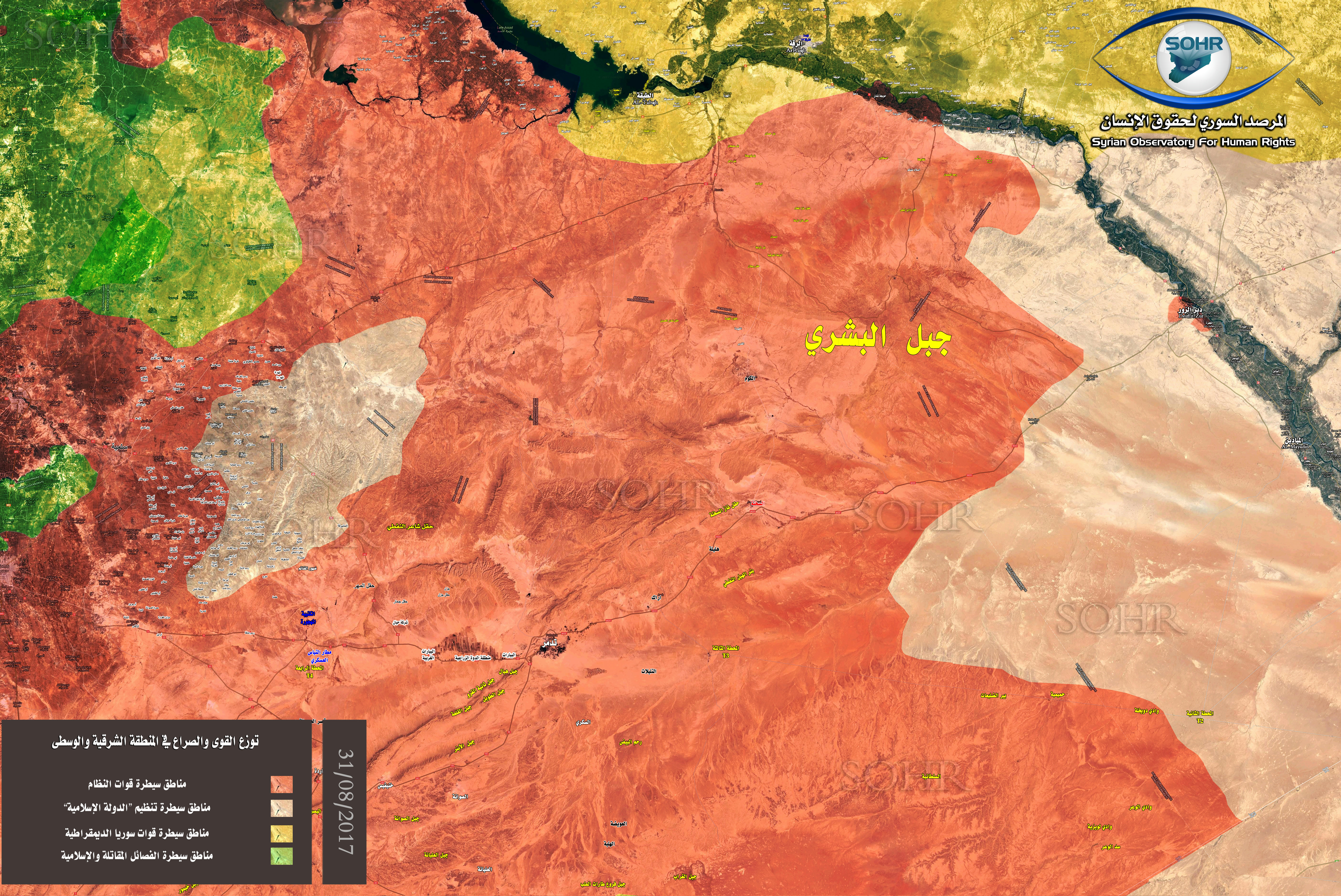 The high quality link of the map of the control of the strategic Jabal Bashri in Al-Raqqah-Deir Ezzor-Homs Triangle